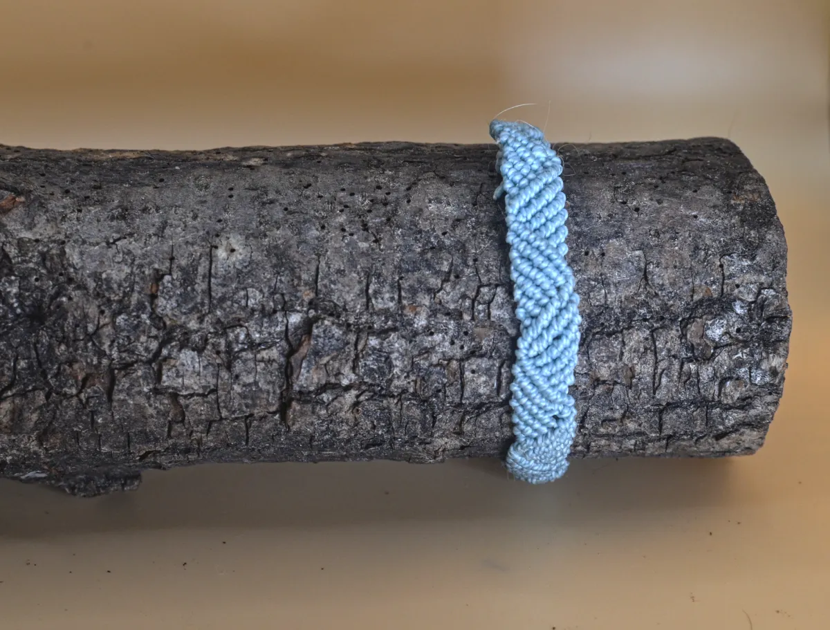 Je zhotovený z brazilské povoskované nitě, která je pevná, snese občasný styk s vodou a drží barvu. Náramek je doplněn posuvným uzlíkem, díky kterému lze přizpůsobit velikost náramku přímo na ruku. Šperky z této nitě zhotovené ručně technikou micro macrame jsou originálním módním doplňkem a zároveň mohou být nevšedním dárkem pro muže i ženy.